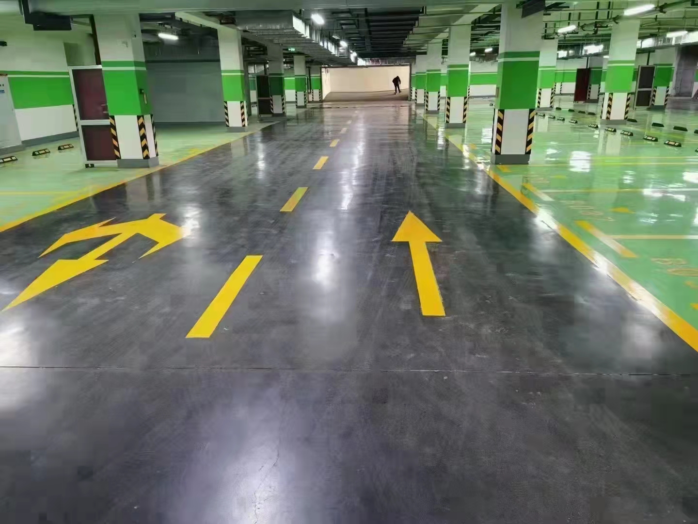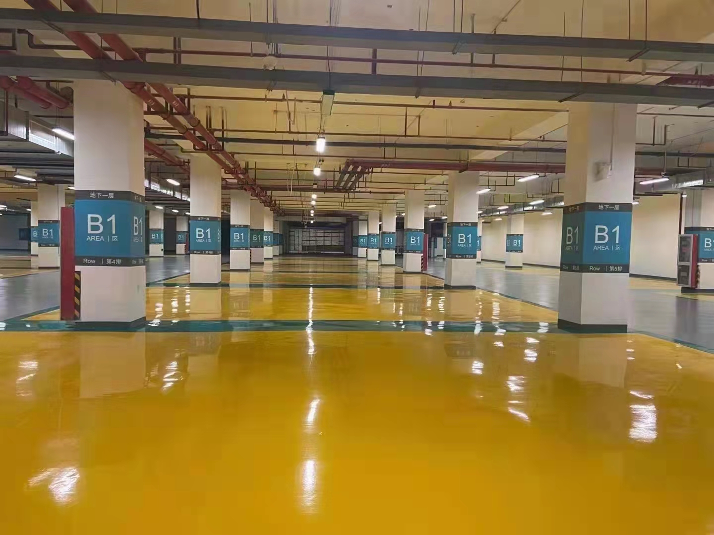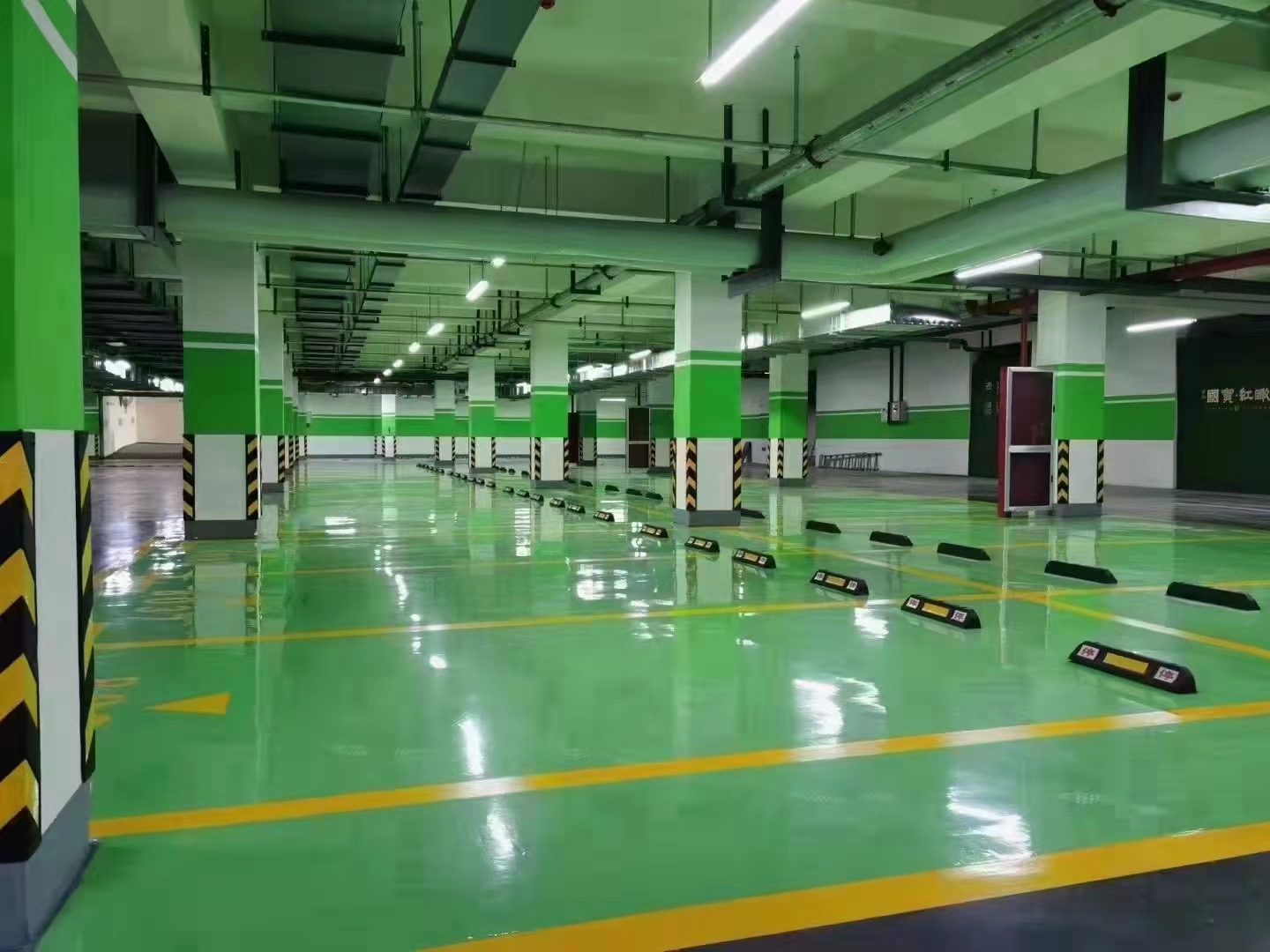 環(huán)氧砂漿地坪采用底漆、中涂、面漆為薄涂漆, 用輥涂施工工藝,顏色可選。中涂采用了環(huán)氧砂漿,地坪具有較高的抗壓度。地坪完成后整體無(wú)縫,外觀平整亮麗??筛鶕?jù)區(qū)域及功能進(jìn)行功能性分色分區(qū),具有耐腐蝕性、耐磨性、防潮防滑