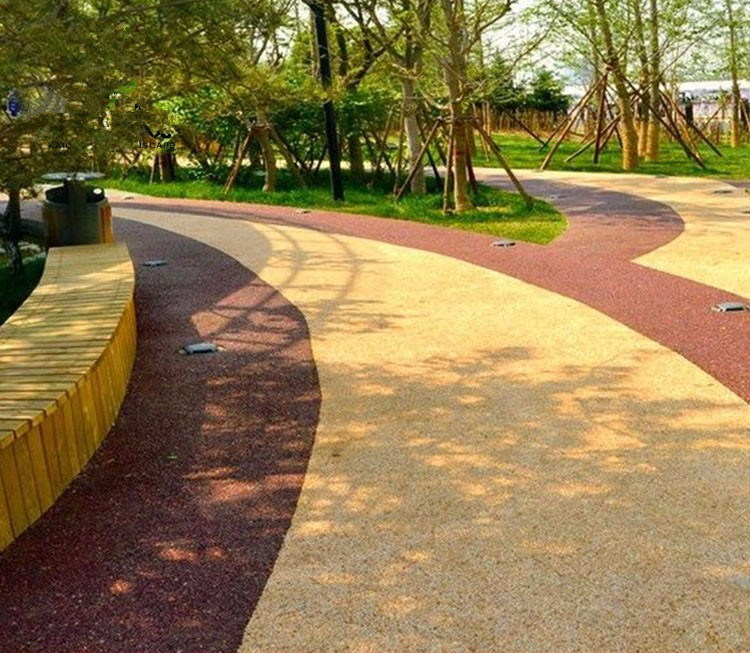 粘結(jié)劑使彩石顆粒之間保存1定的縫隙,構(gòu)成通道,透水透氣功用十分優(yōu)勝。